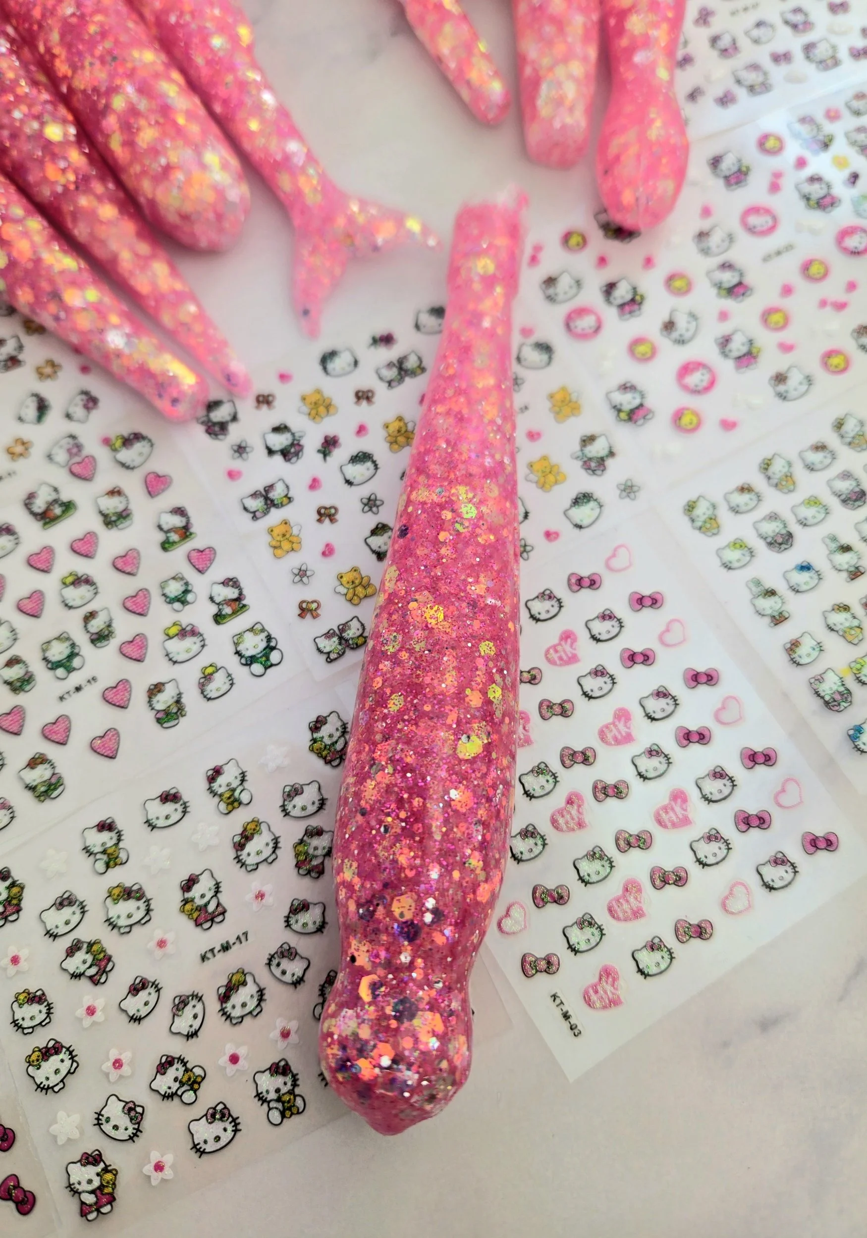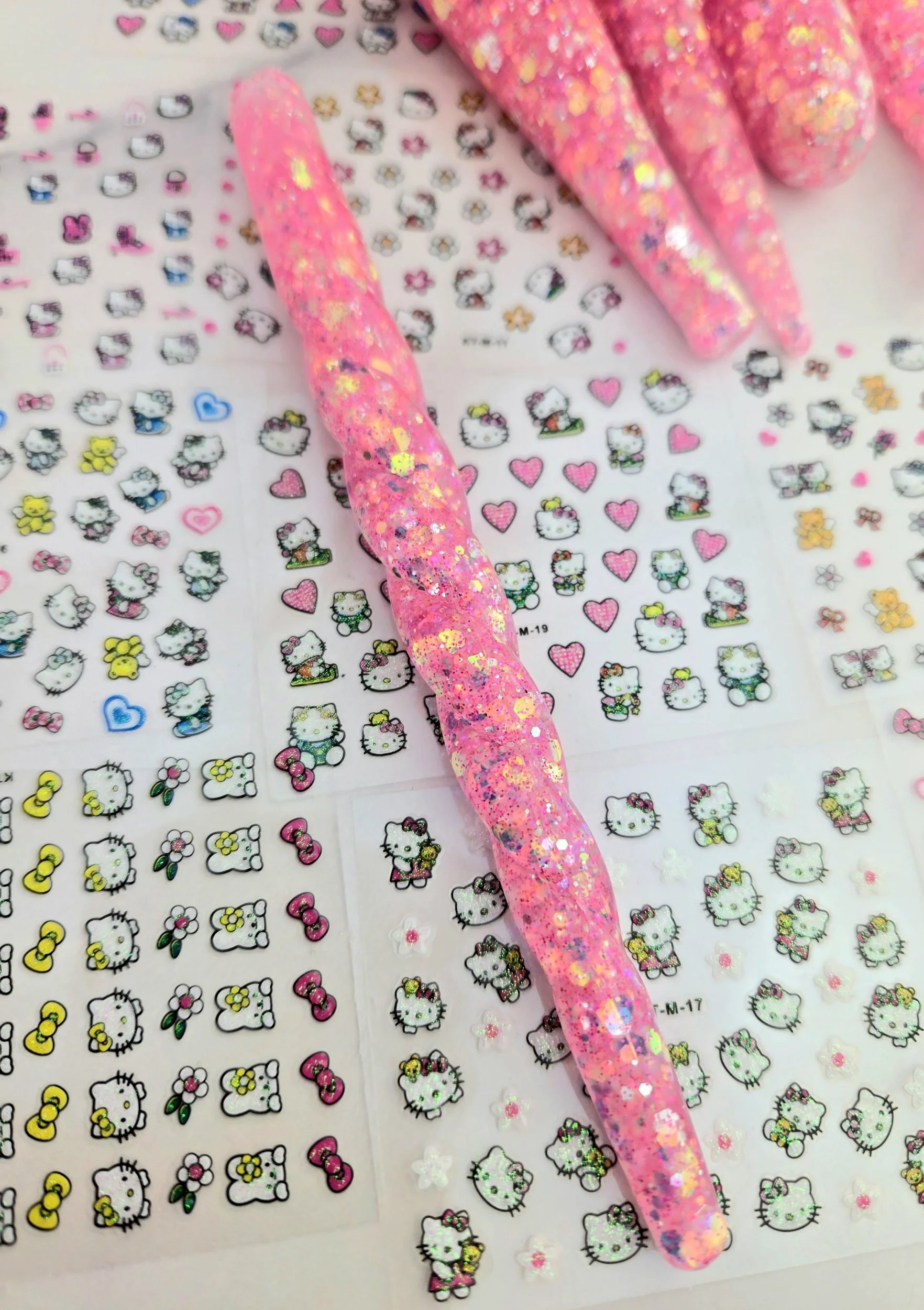 Each handle will have an assortment of different Hello Kitty stickers through out the handles. Unicorn and Mermaid will be the 2 handles that will not have stickers top to bottom of the handle and will be priced accordingly.